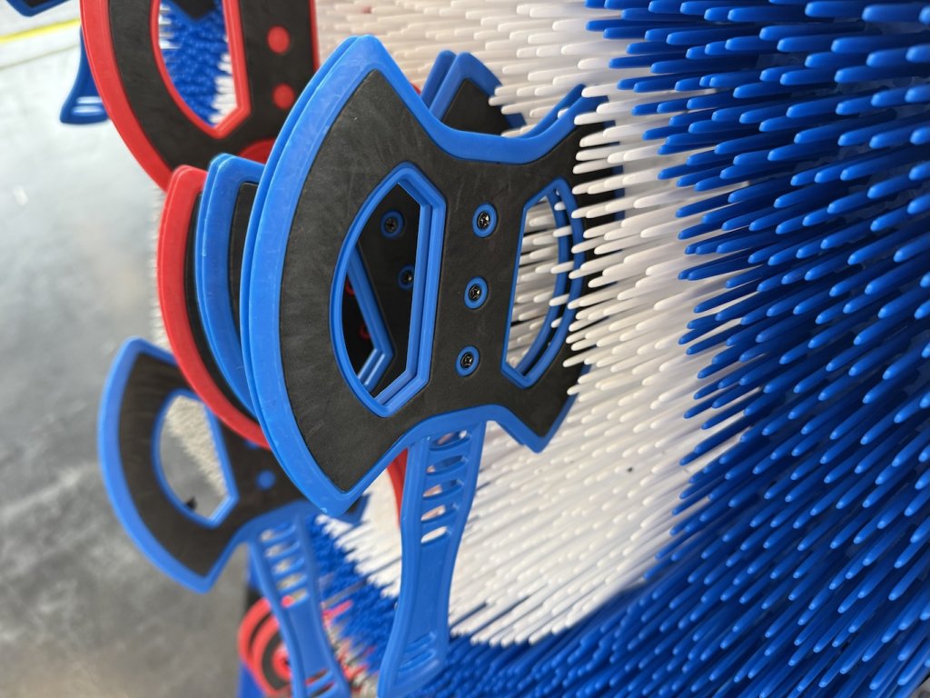 - skládá ze stovek 5 centimetrových štětin, navržen tak, aby bezpečně chytal sekery při každém hodu