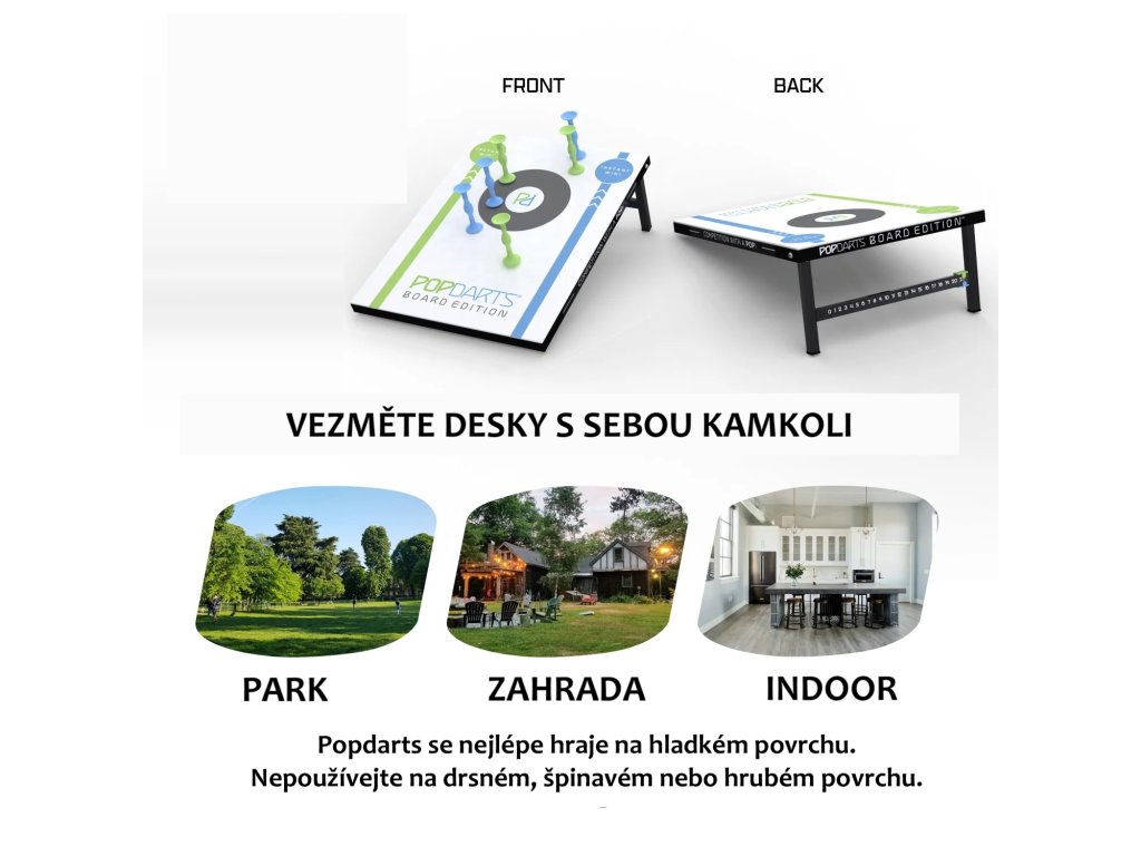 Popdarts Board Edition kombinuje přesnost přísavných šipek se zábavou z Cornhole. Sada obsahuje dvě desky do každého počasí, Popdarts šipky, cestovní pouzdro a zapisovač bodů pro snadné počítání.