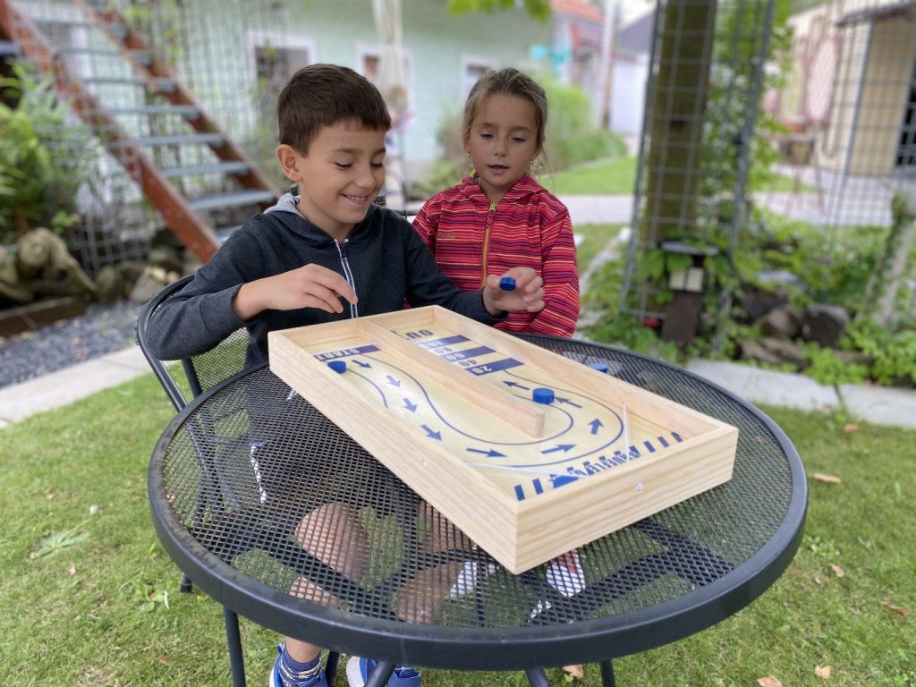 - Dřevěná hrací deska se pokládá na rovný povrch, nejlépe stůl.