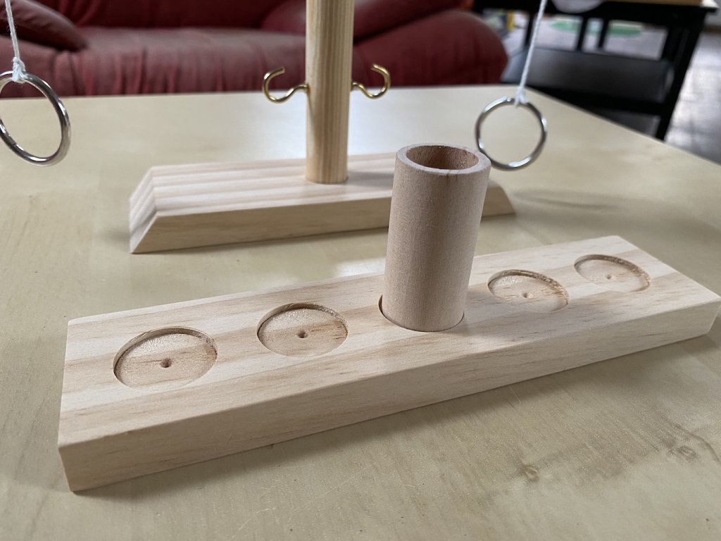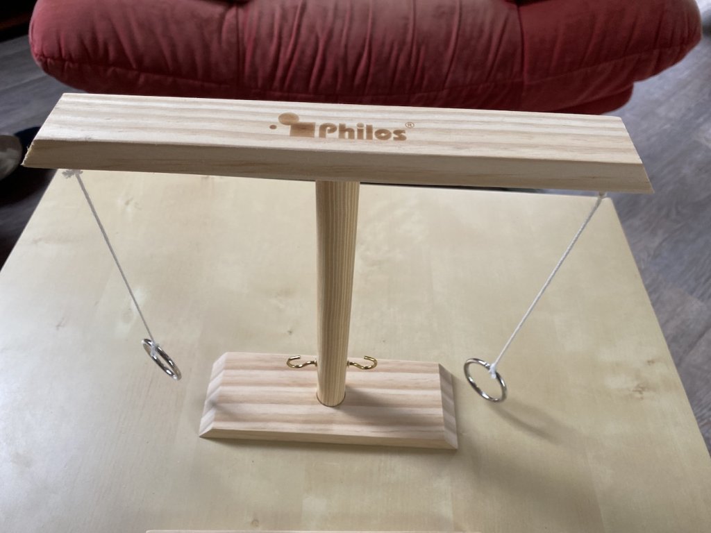 Zaháknete kroužek za háček dříve než soupeř. Poté můžete posunout dřevěný váleček o jedno políčko, kdo se dříve "zahákne" ten vyhraje.