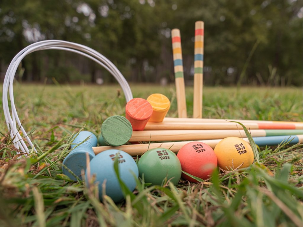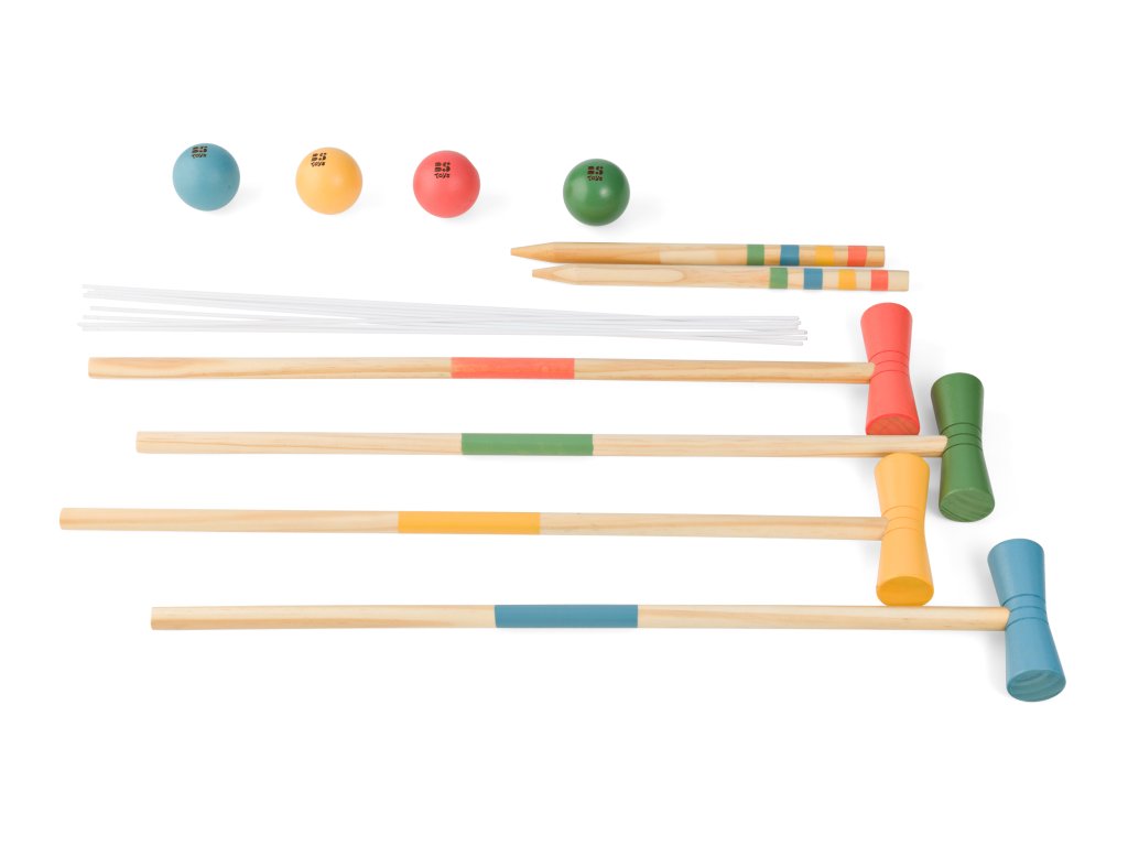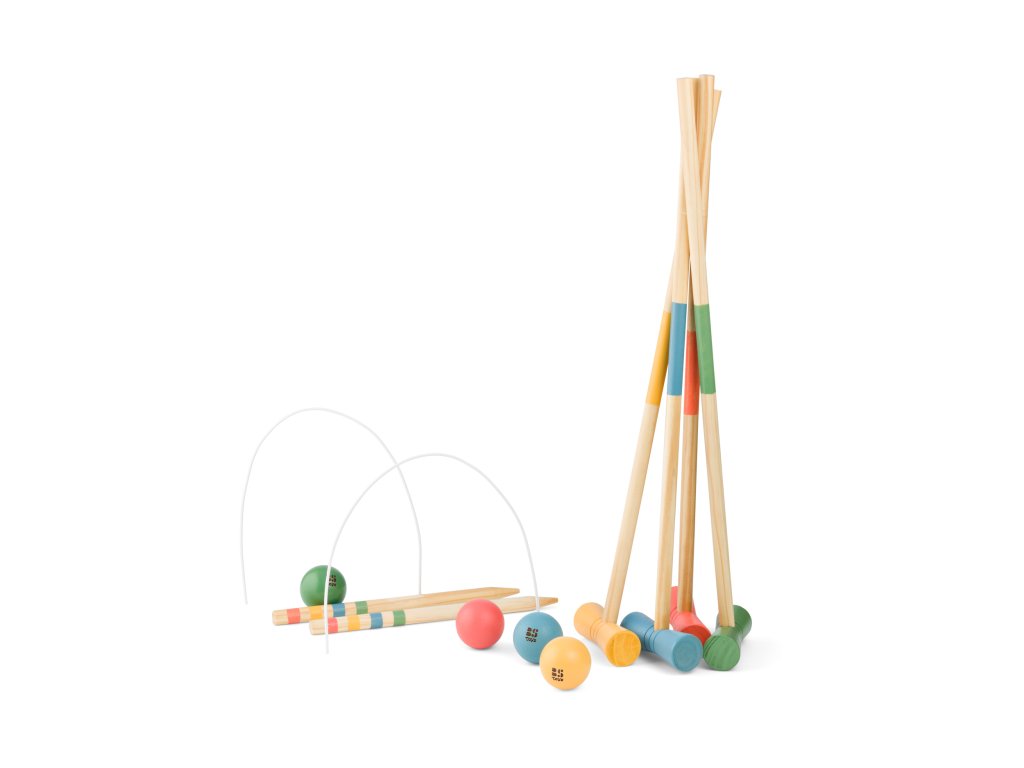 Krásné dřevěné provedení kroketu pro malé děti. Velikost palic i dřevěných míčků odpovídá malým dětem.