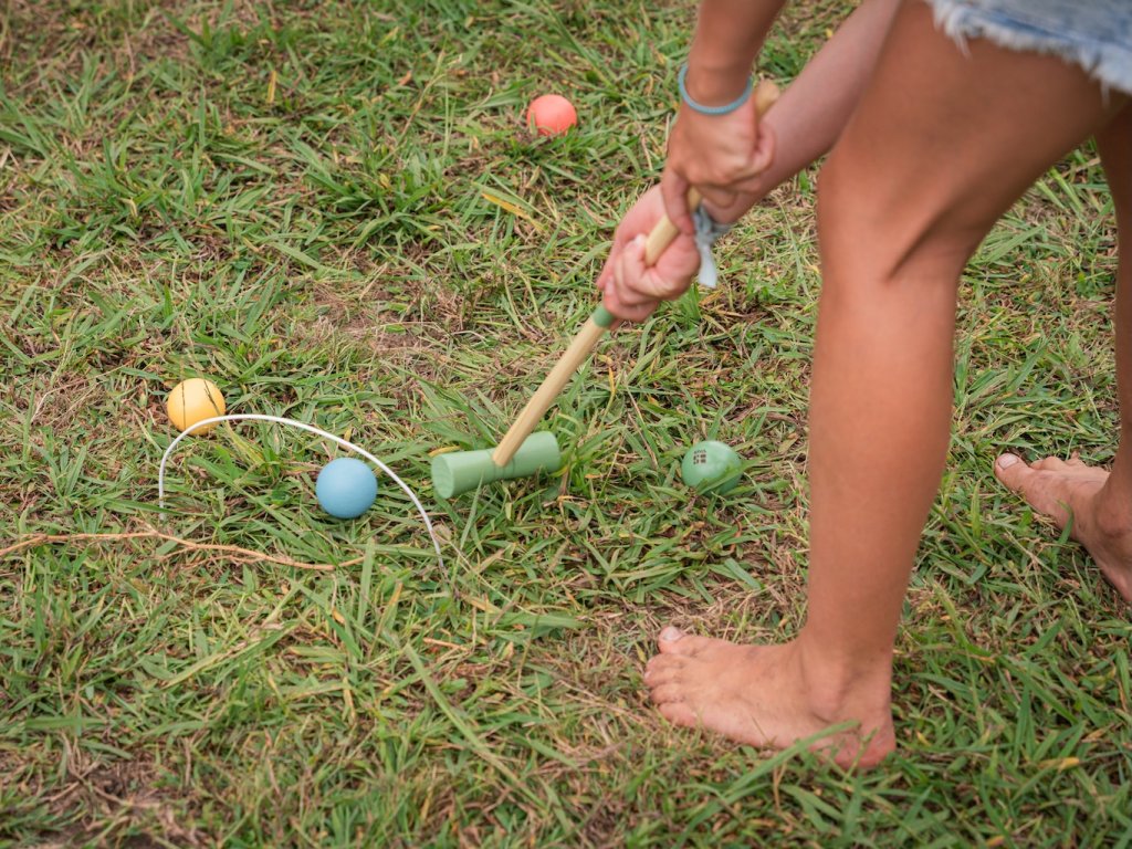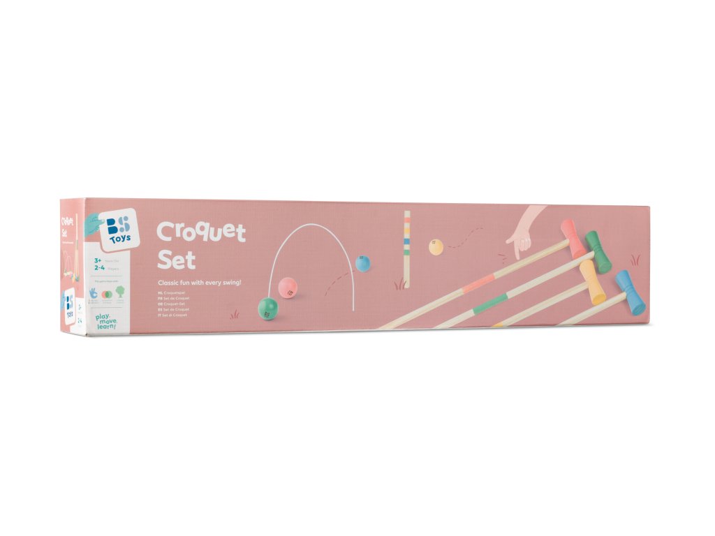 Dětský kroket pro nejmenší. Hra je určena pro 1-4 hráče, nebo se mohou děti střídat. Rozestavte "branky" a pusťte se do hry.