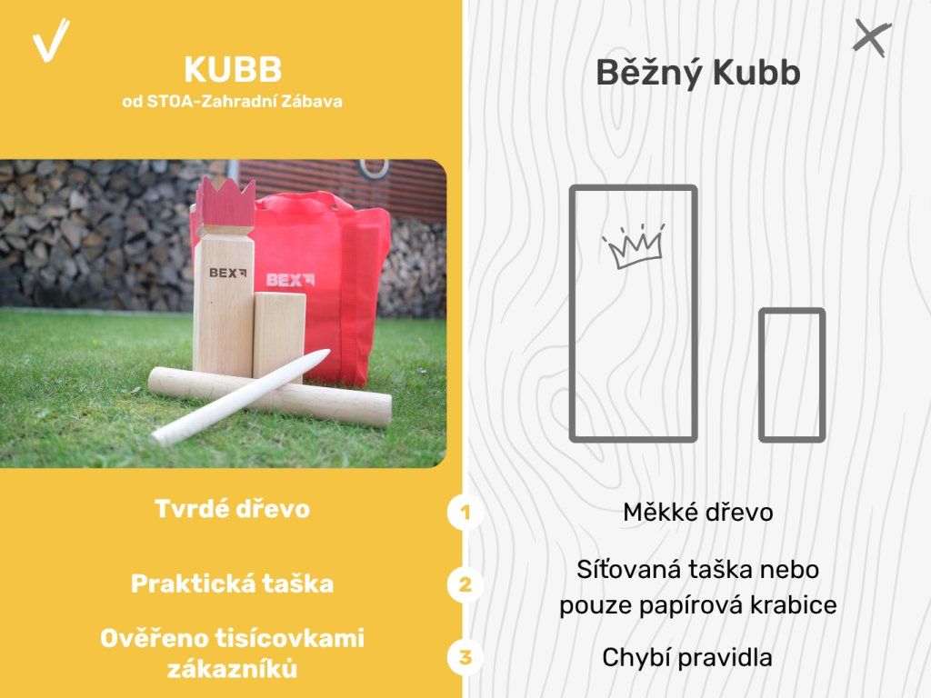 - Herní sada je schválena pro hru Kubb - Swedish Kubb Federation! Rozměry této sady jsou vhodné pro turnajové klání hry Kubb.