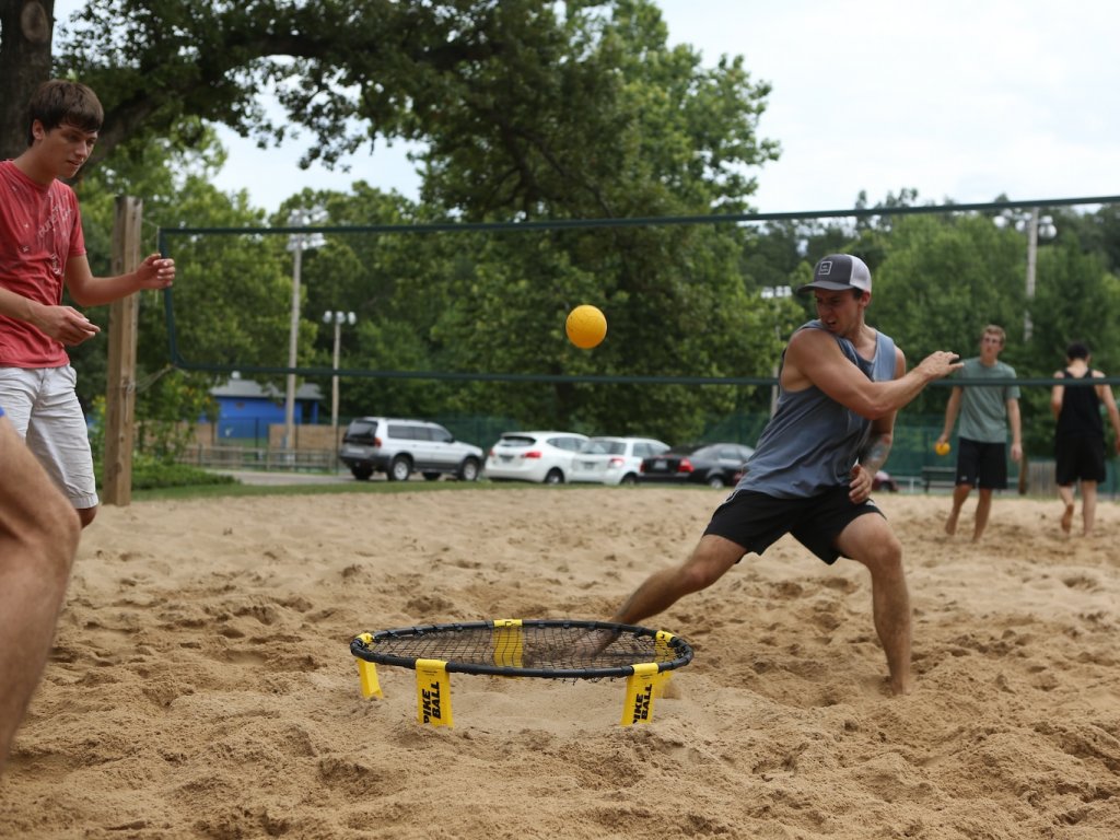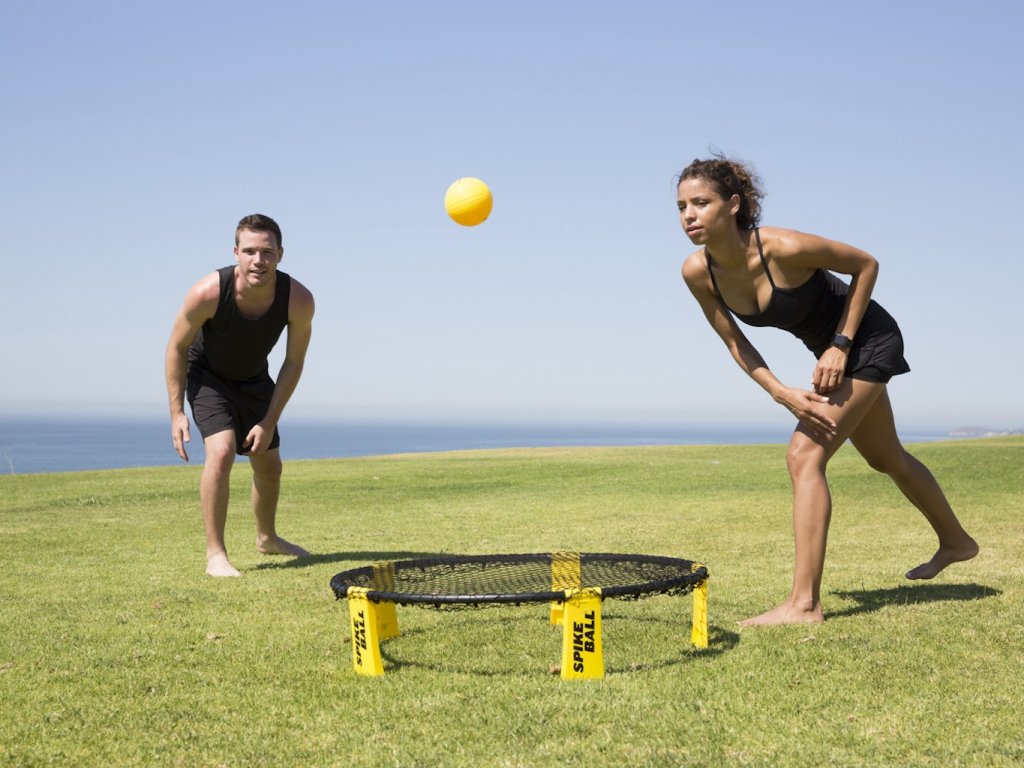 Hra podobná plážovému volejbalu, ale hrát můžete na daleko menší hrací ploše, protože síť je nahrazena malou trampolínkou.