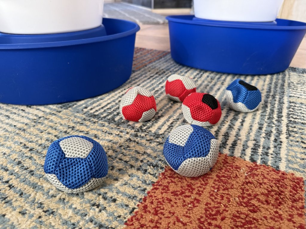 - 3x červené míčky "hakisaky" a 3x modré míčky "hakisaky".