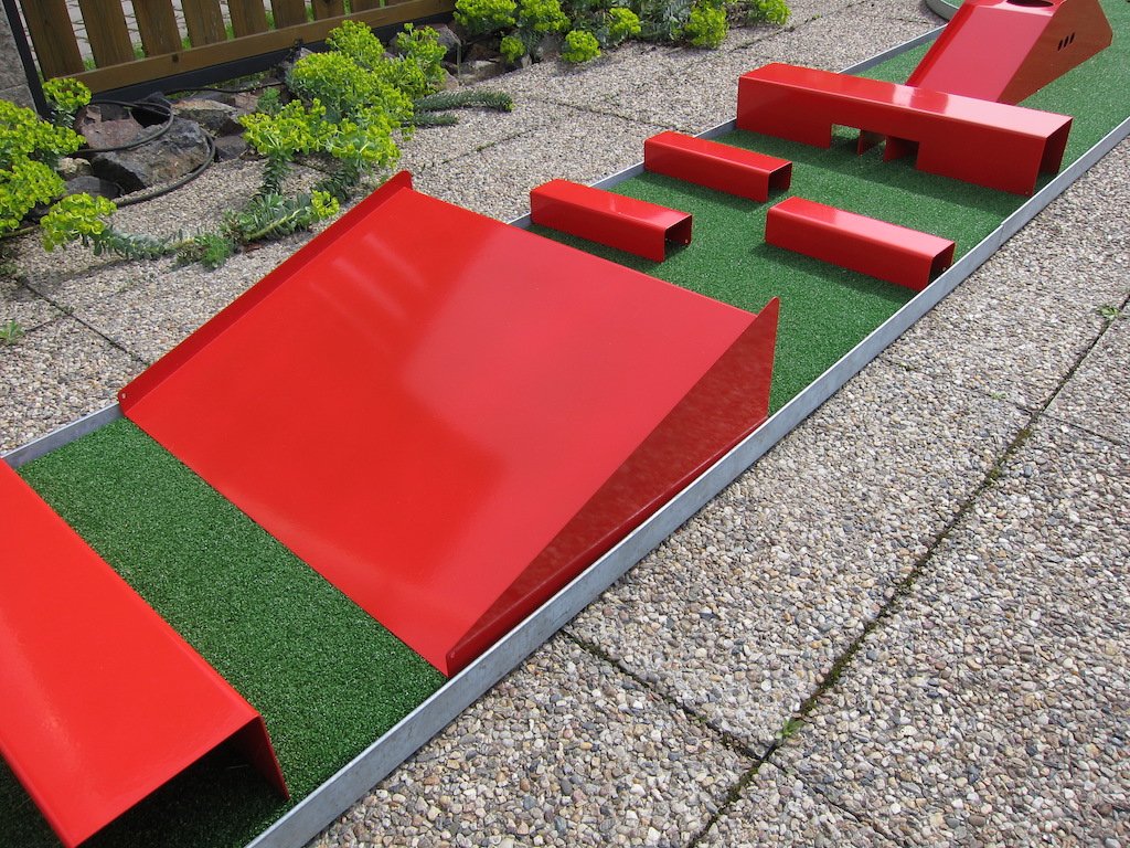 - Rozměry: překážky jsou vhodné na naše provedení Zahradního minigolfu. Šířka dráhy: 60 cm.