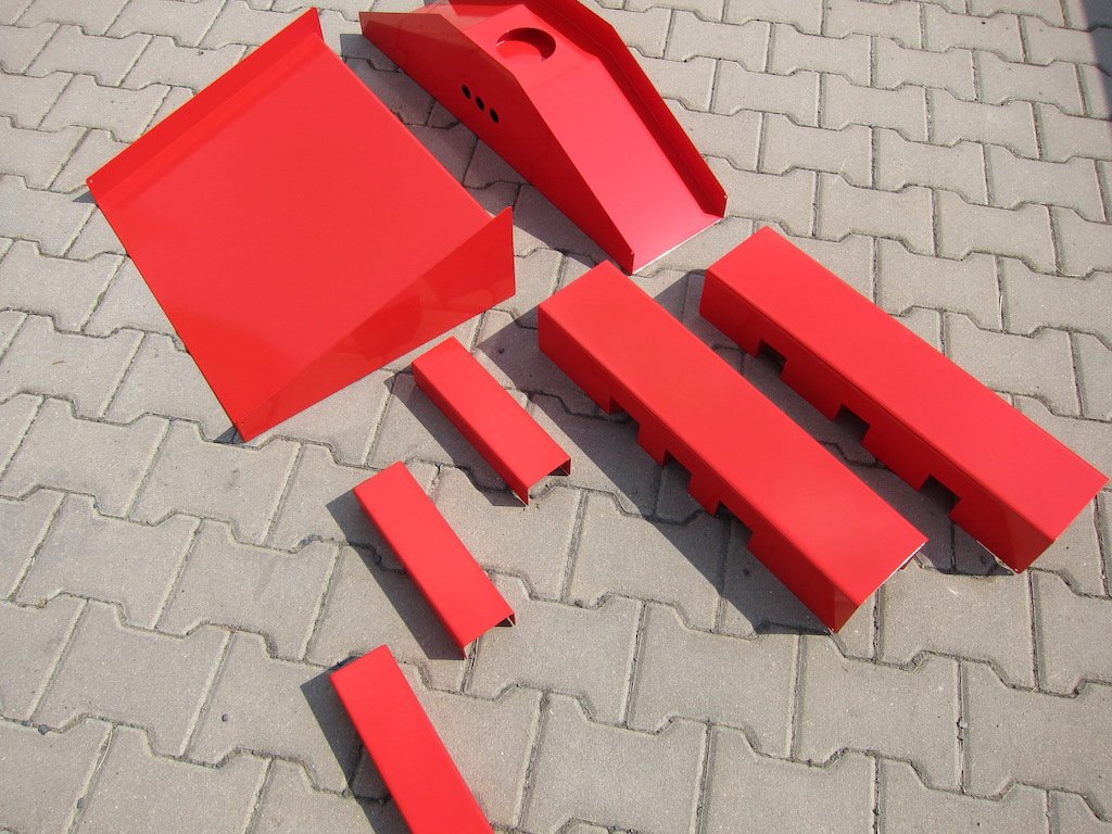 - Překážky jsou vyrobeny z plechu (síla materiálu 1,5 mm), ošetřeny podkladovým pozinkem a lakovány práškovou barvou.